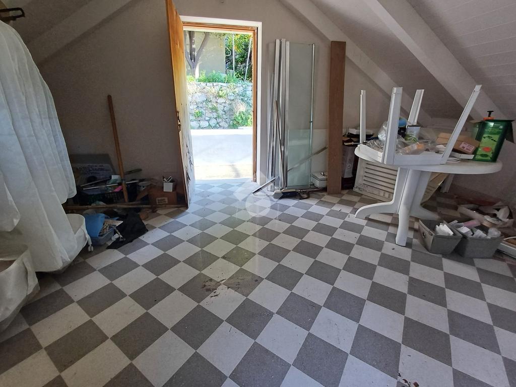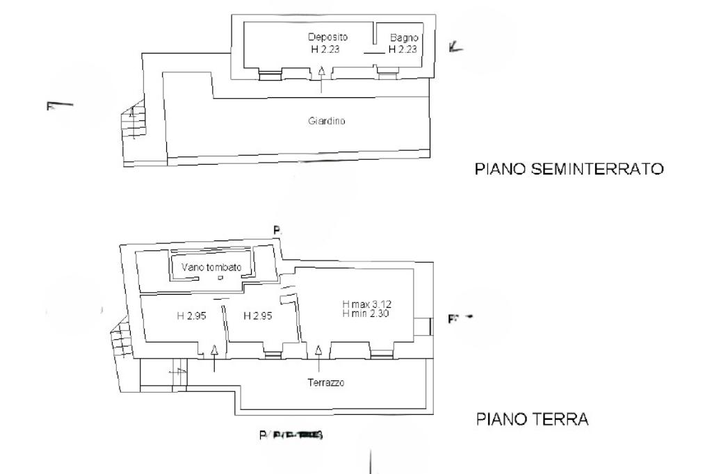 Piano seminterrato: vano deposito con bagno e accesso diretto al giardino attiguo.