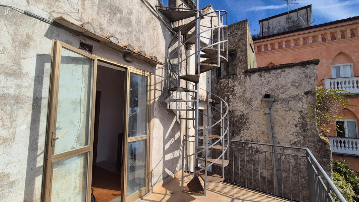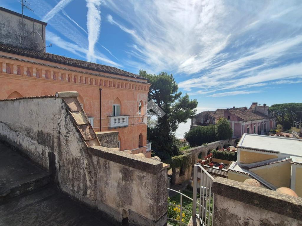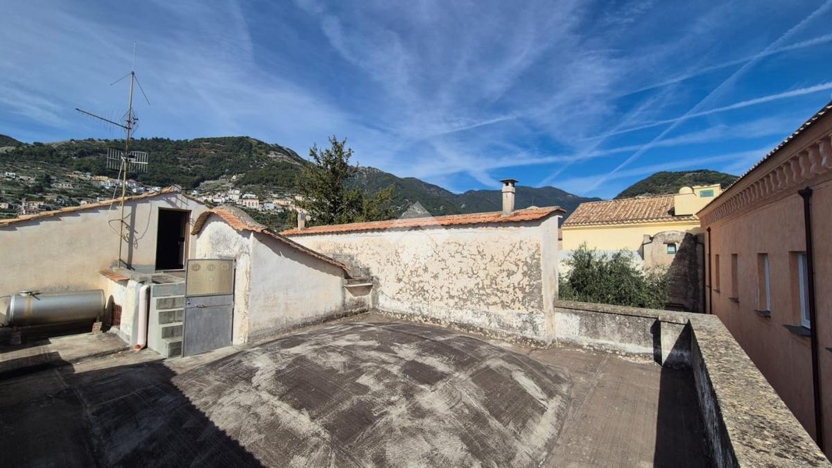 Da un lato si accede a un disimpegno con bagno e due ampie camere da letto; dall’altro lato si apre un luminoso soggiorno, altre due camere da letto, un cucinotto e un secondo bagno. Le camere e il soggiorno, sono impreziositi da eleganti volte a crociera, tipiche dell’architettura locale, che conferiscono unicità agli spazi. Dal ballatoio si accede a un comodo terrazzo a livello, dove una scala in ferro conduce al piano superiore, dove troviamo un sottotetto di circa 100 mq ( per la metà praticabile), due terrazzi panoramici con vista mozzafiato che spazia dal centro storico di Ravello fino al mare, e un pratico ripostiglio di 12 mq. L'immobile rappresente una soluzione rara e affascinante, ideale per essere adibita a struttura extra alberghiera di prestigio nel cuore della Costiera Amalfitana.